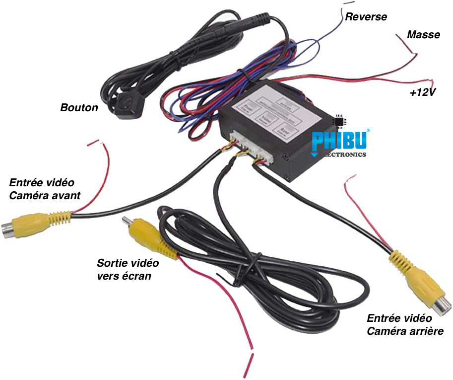 Le module Smart-Cam permet de gérer une caméra de vue avant et une caméra de recul sur une seule et même entrée vidéo d'un module AVS, d'un écran déportée ou d'un autoradio Carplay Android.